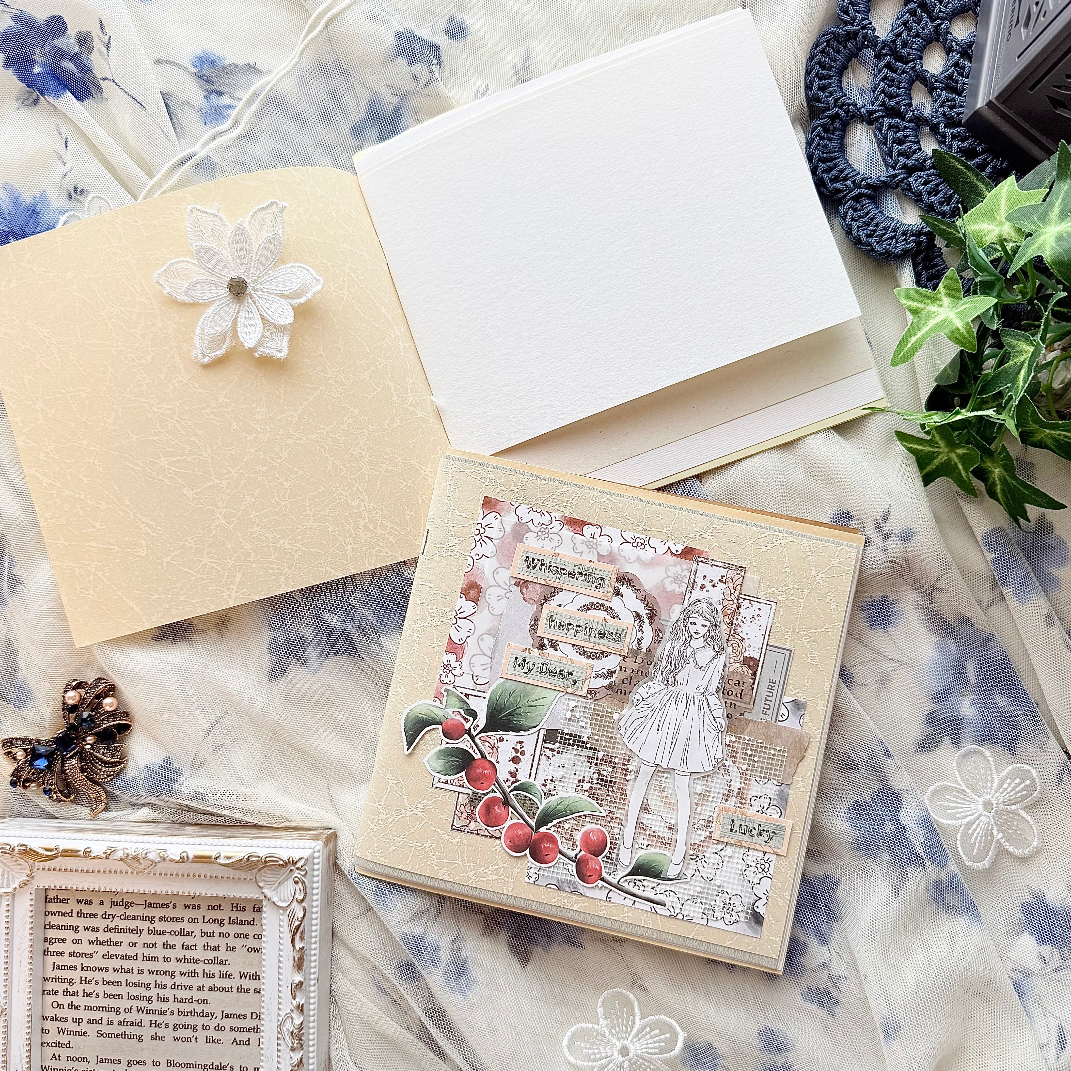 ナチュラルで優しいカラーの特殊紙&和紙13種類からランダムで7〜9種選び綴じています。