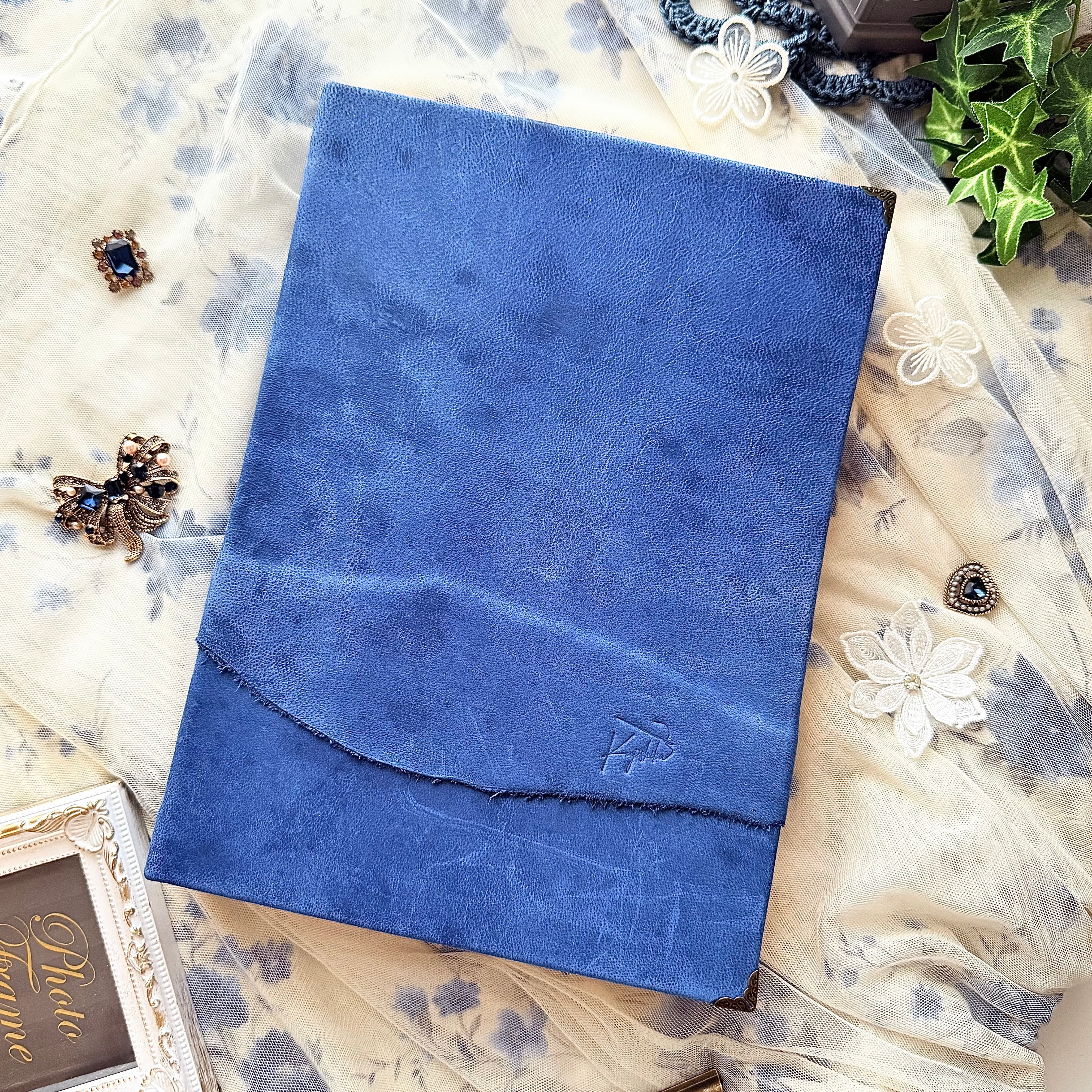【B品】Blue scrapbook |特殊紙あららぎ110kg/198ページ|ラクダ革/インド産|約20.5×28.5×4.3cm