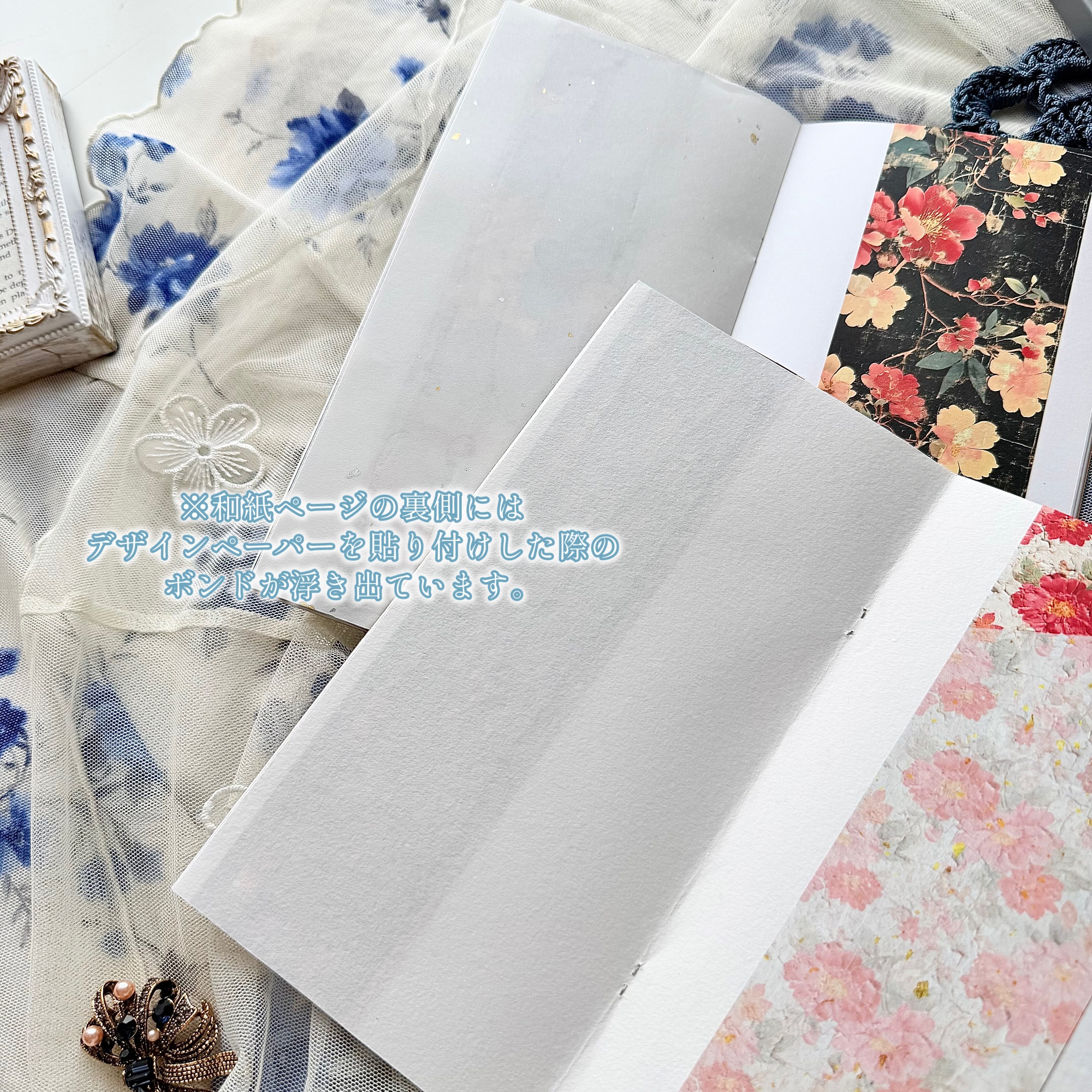 ※ホチキス綴じの為、厚みの出るスクラップブックとしてのご使用や、過度な立体コラージュをした場合破損する可能性がありますのでご注意下さい。