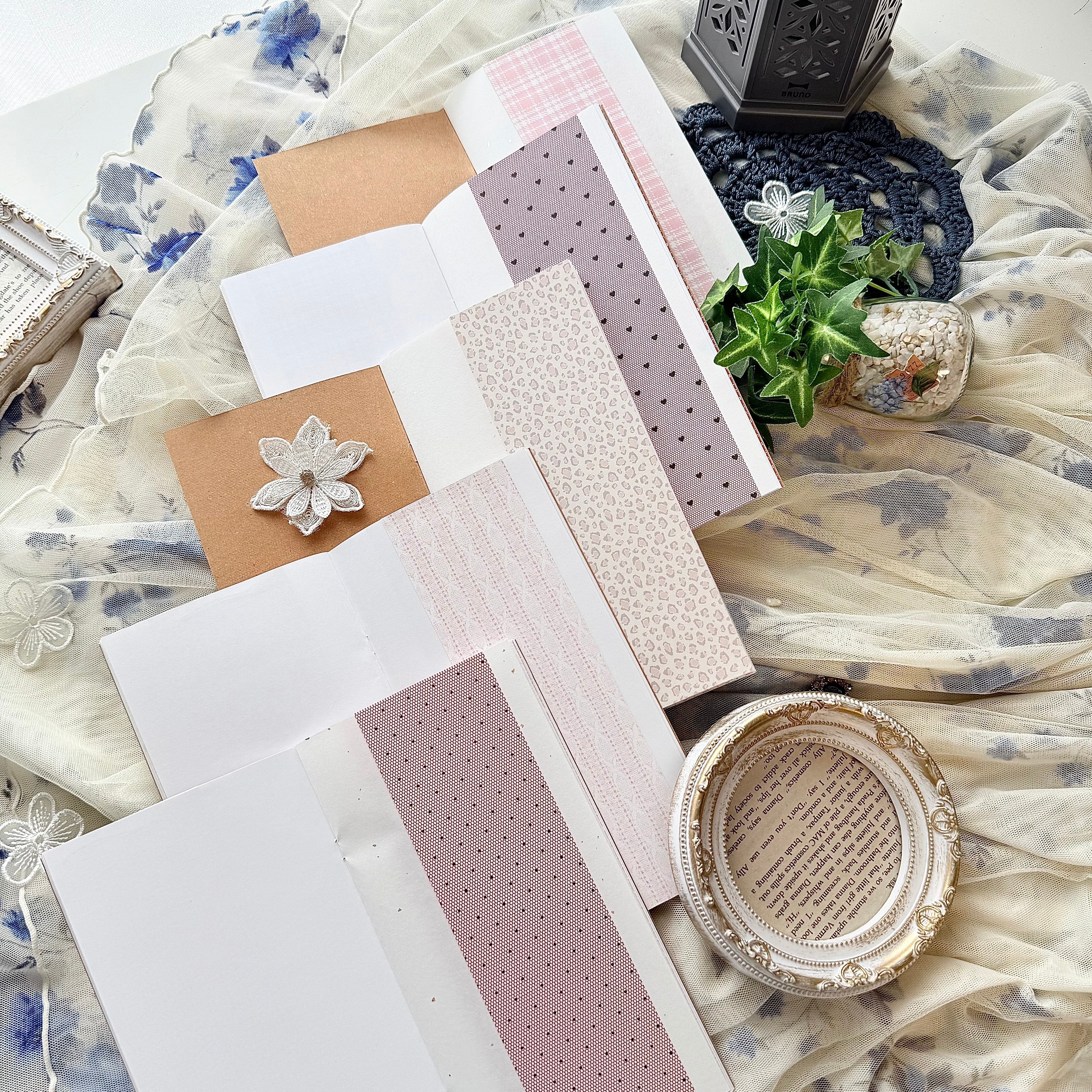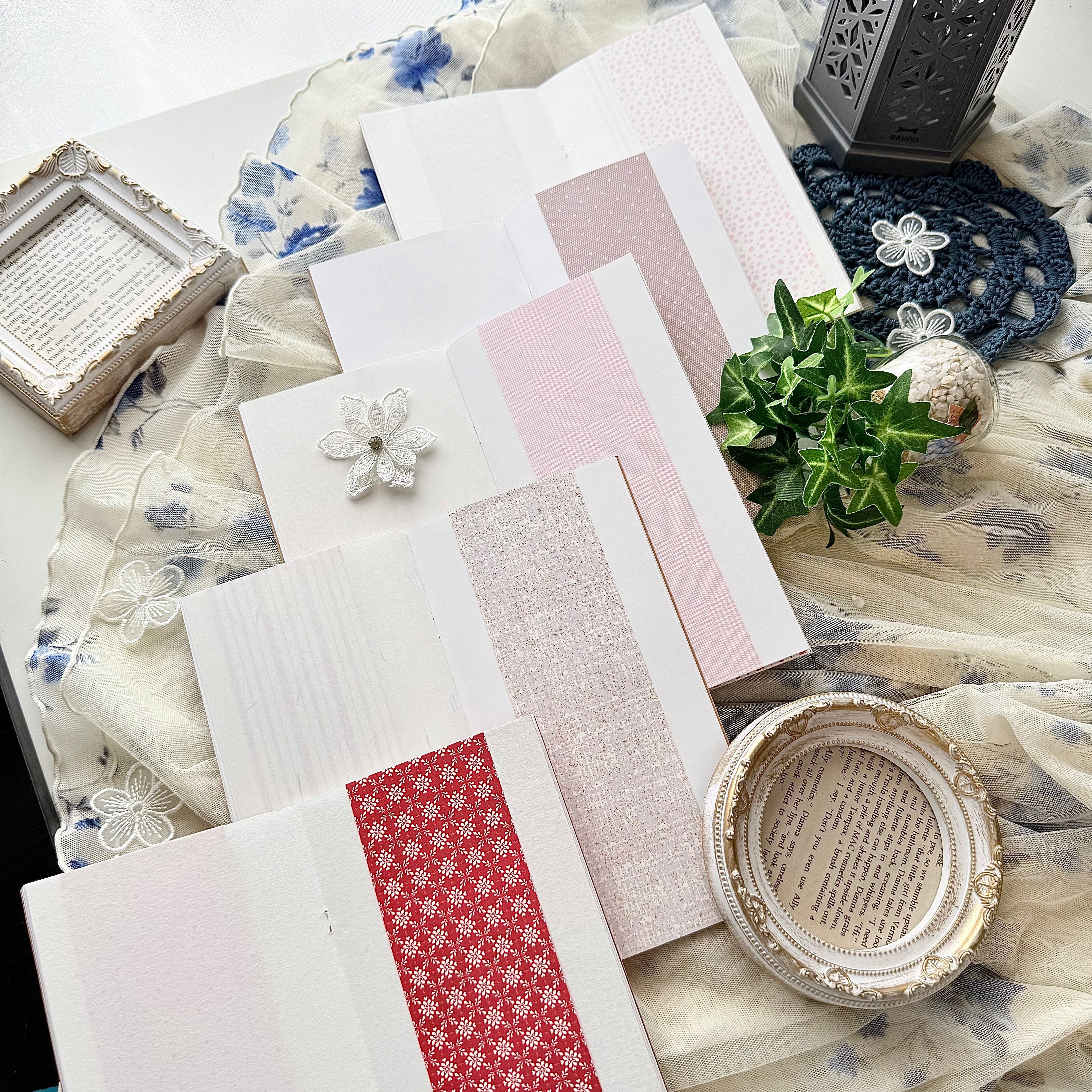 デザインペーパー18種をランダムで貼り付けしたノートです(˶ˊᵕˋ˵)