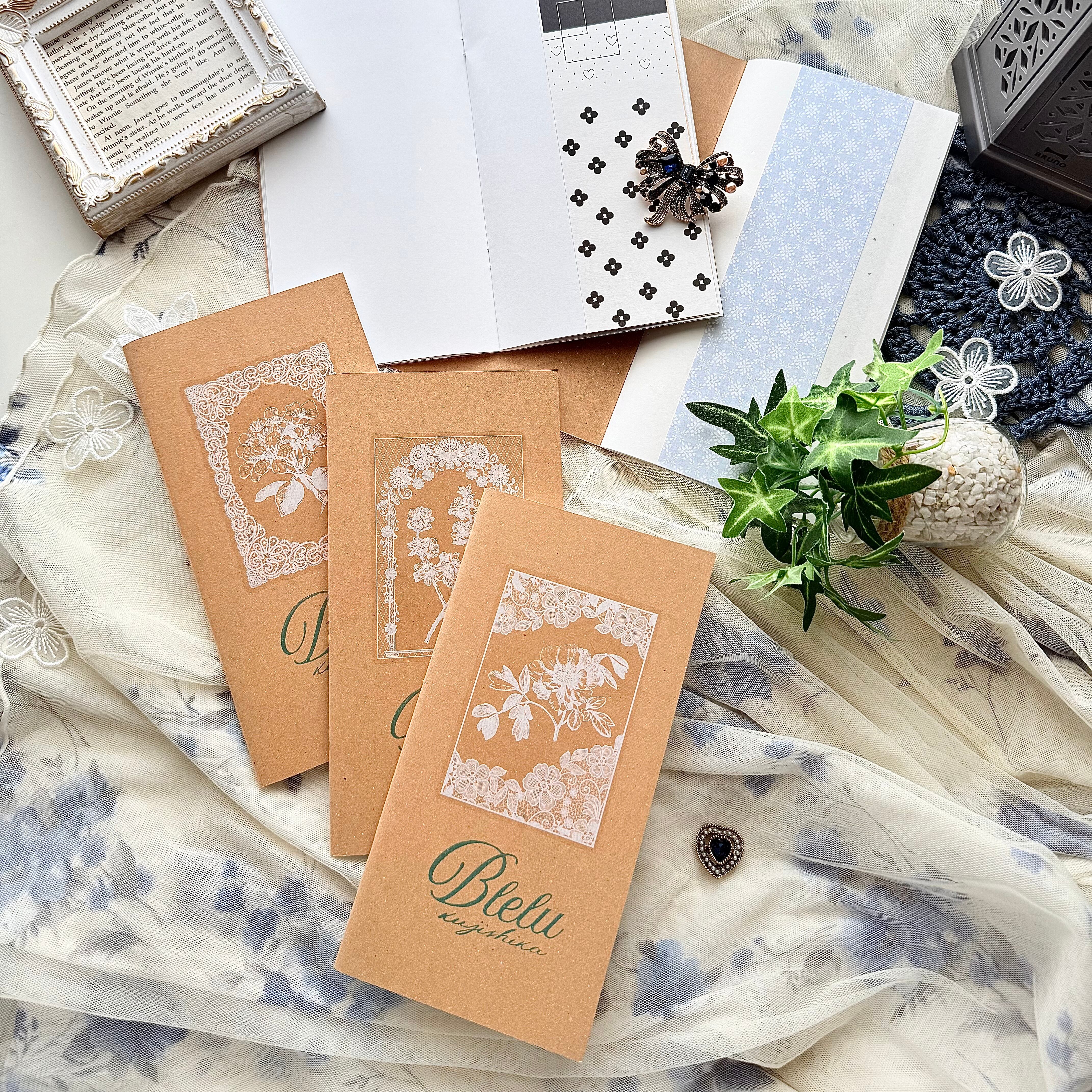 トラベラーズノート|simple cute Blue line|上質紙90kg+和紙2種入り|デザインペーパー18種類貼り付け済み