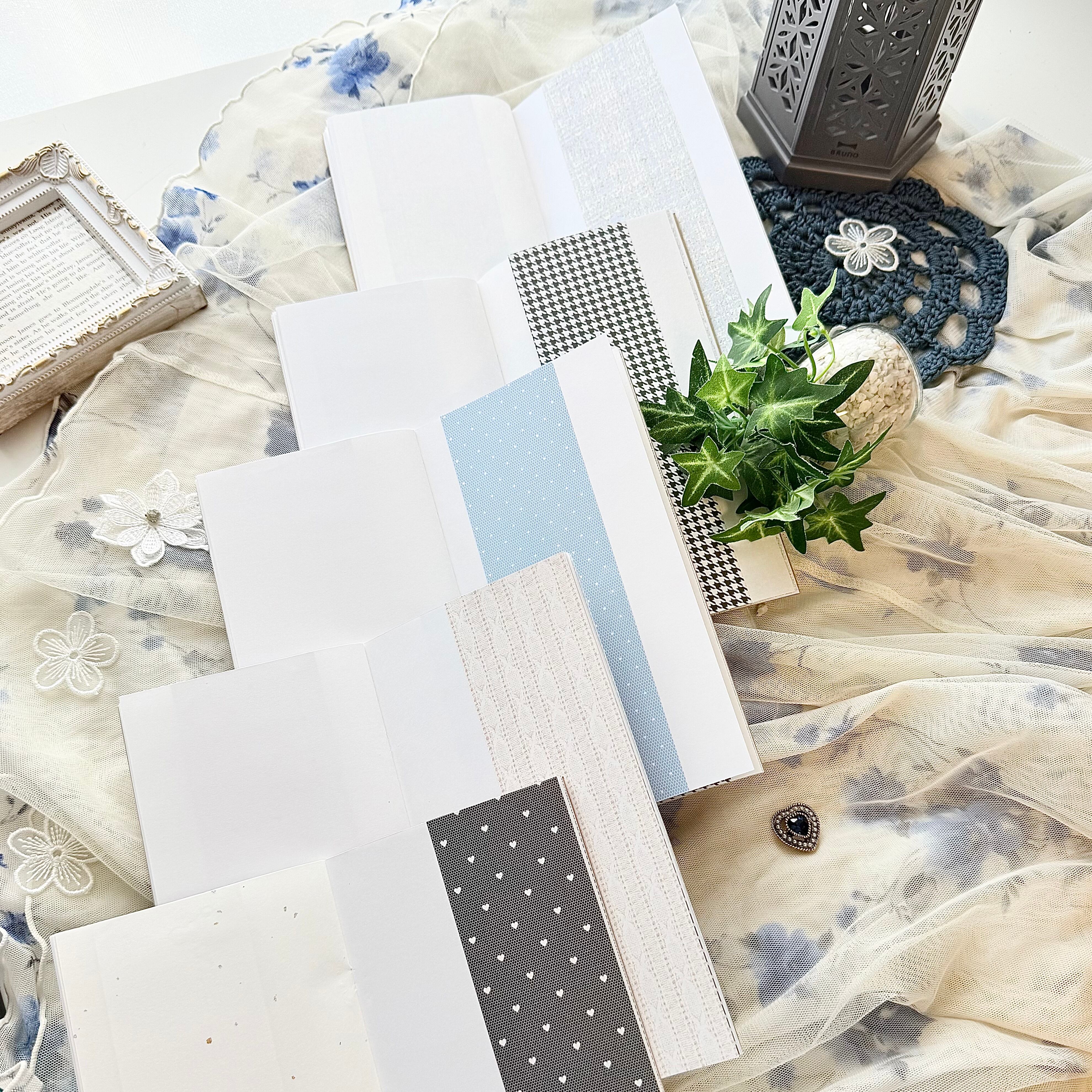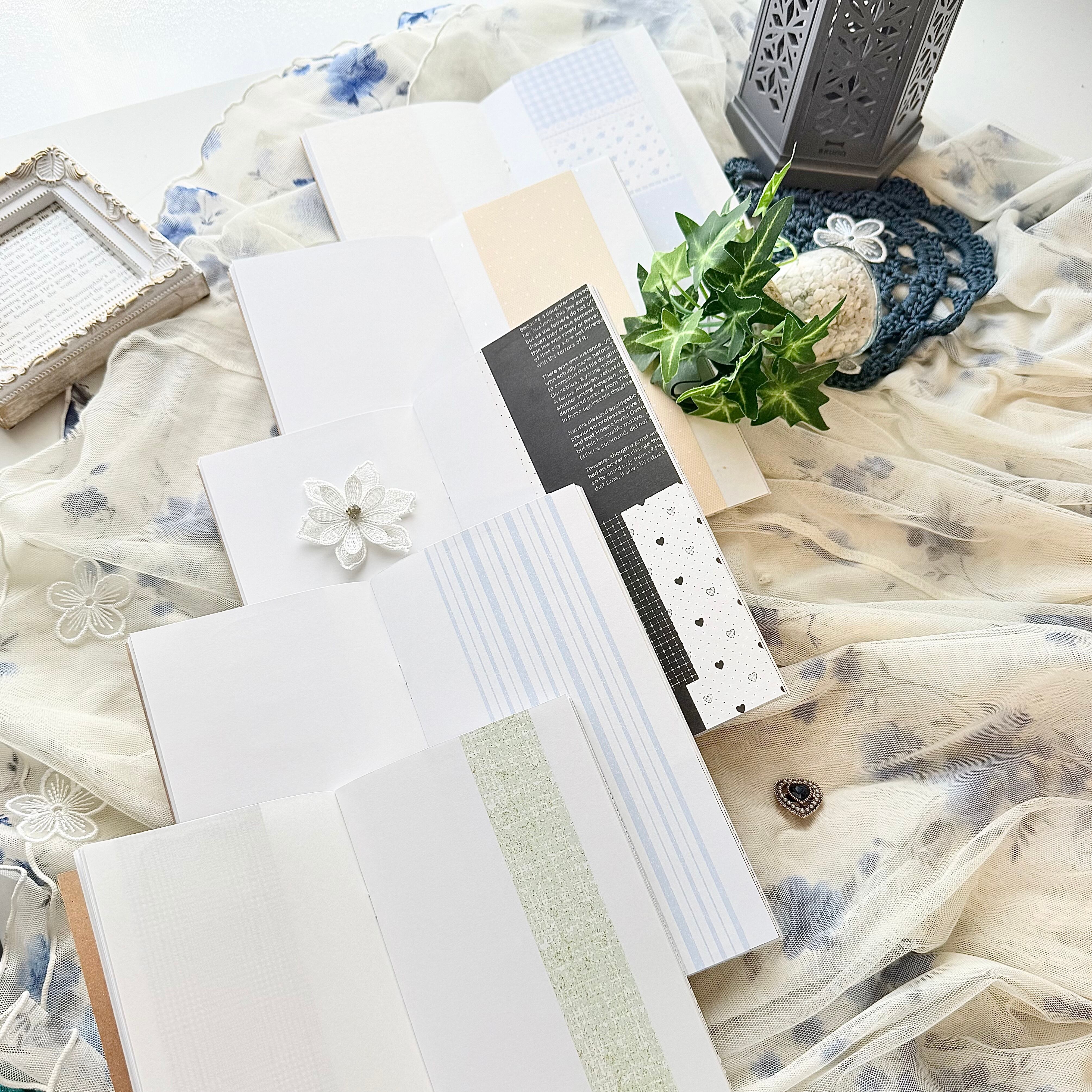 デザインペーパー18種をランダムで貼り付けしたノートです(˶ˊᵕˋ˵)