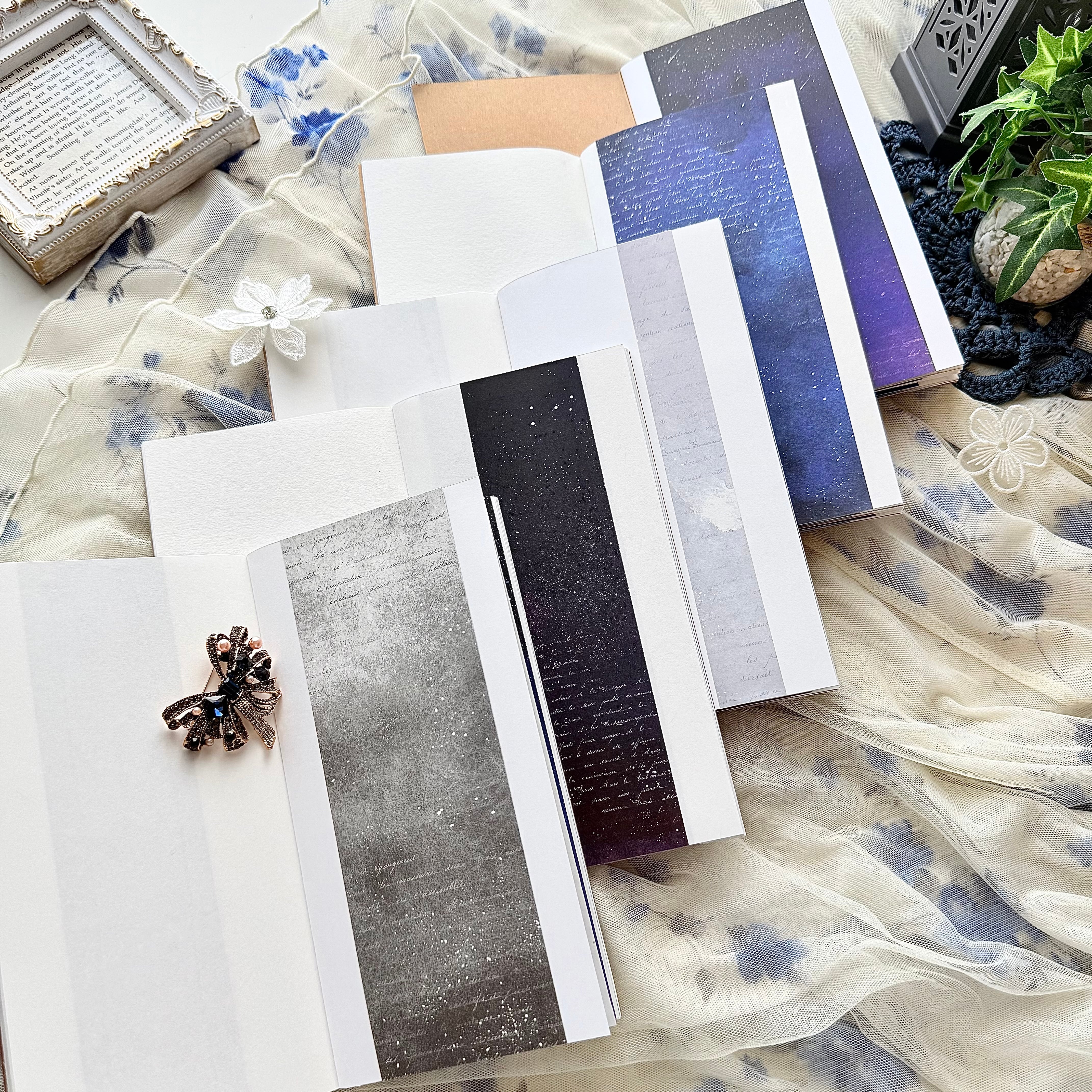 通常のトレーシングペーパーをデザインペーパーに重ねたページあり。