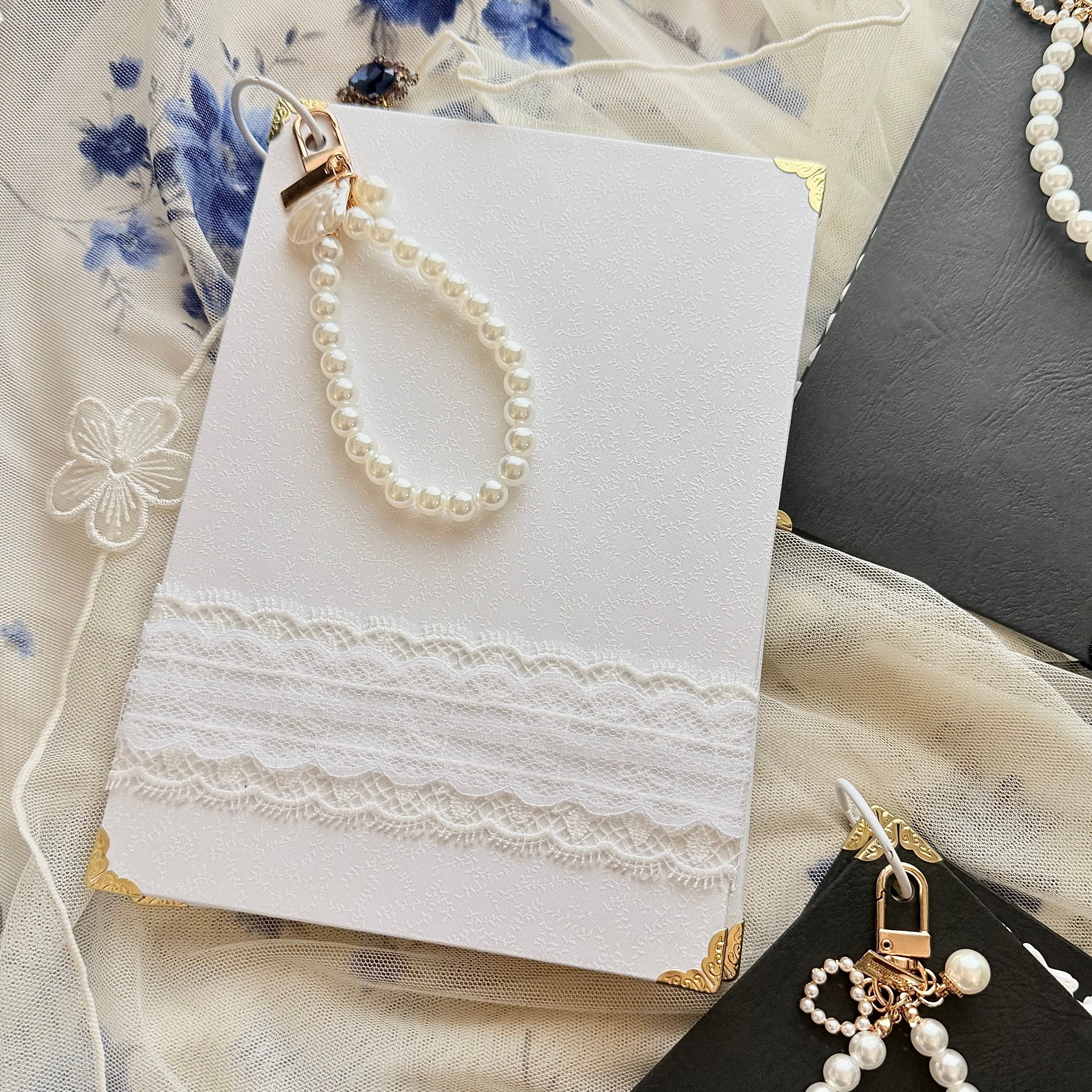 表紙付きフリルノートbig|pearl|レクタングル|チャーム付き